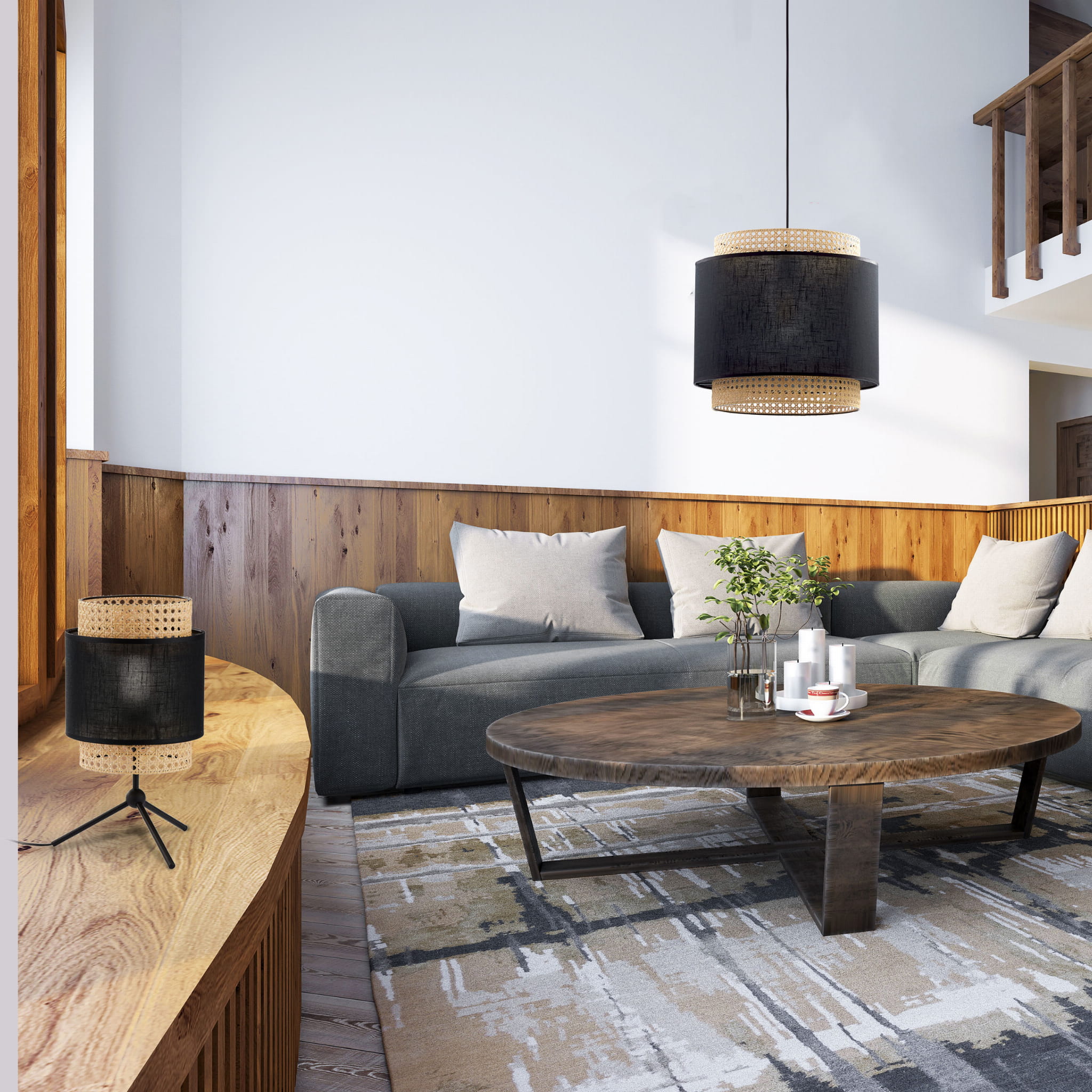 | Materiał klosza | Tkanina + ratan naturalny |