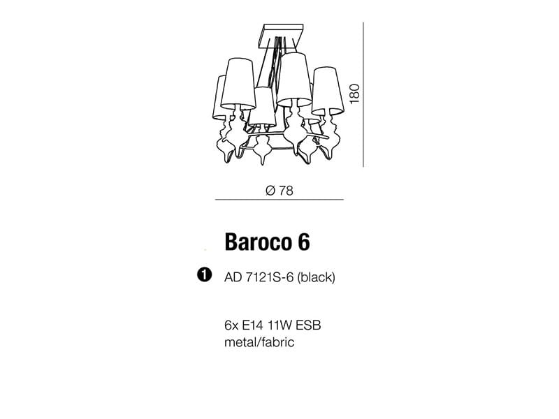 Lampa wisząca BAROCO 6 czarna AZ1379 Azzardo