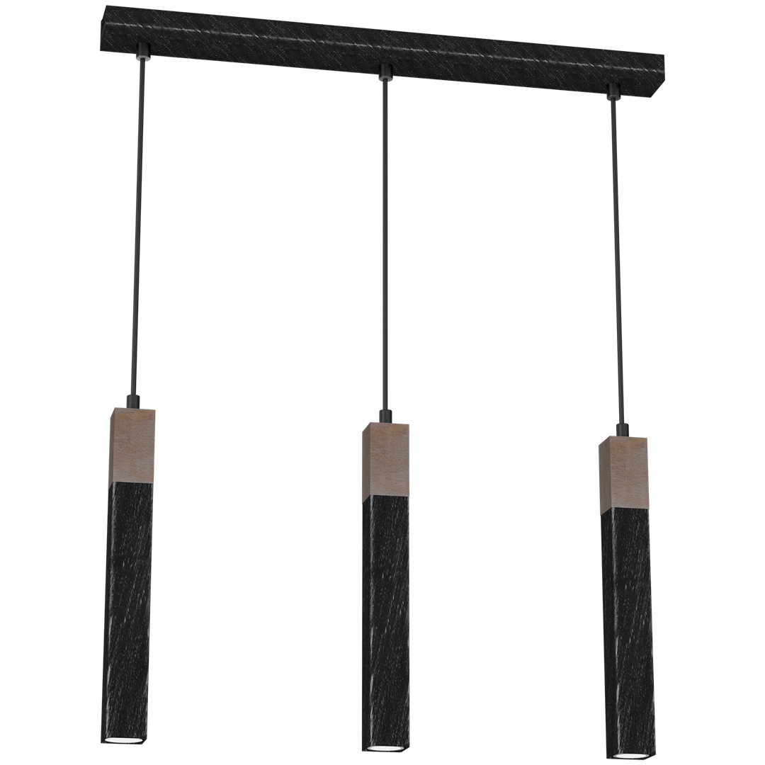 Lampa wisząca SOLO SAWN BLACK / PATINATED WOOD 3x mini GU10 MLP7470 Milagro