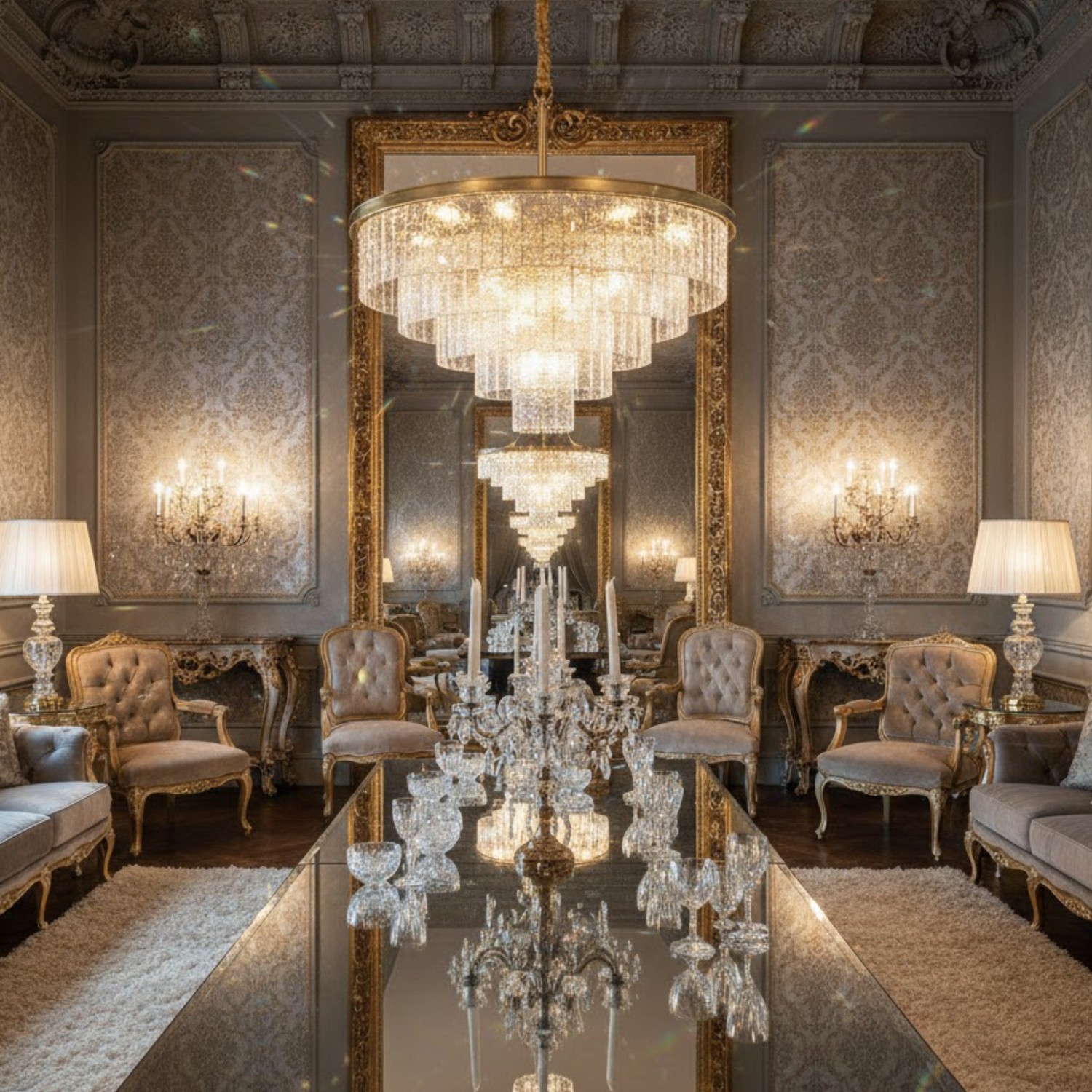 Lampa wisząca SPLENDORE 50 cm - żyrandol złoto-kryształowy DN915-50A Step into Design