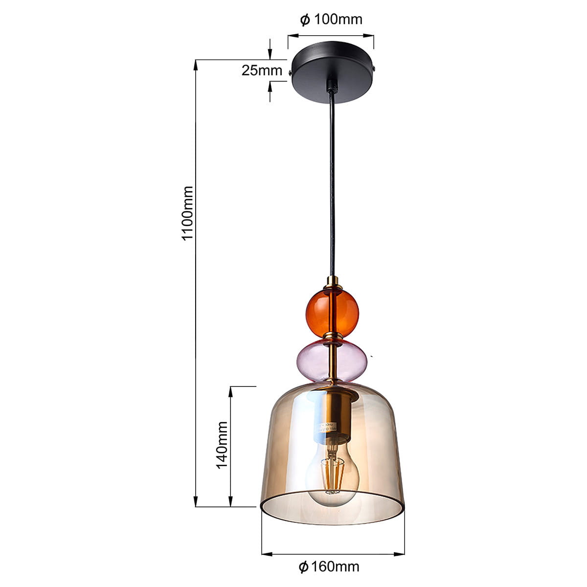 Lampa wisząca Tropea bursztynowa 1xE27 Light Prestige