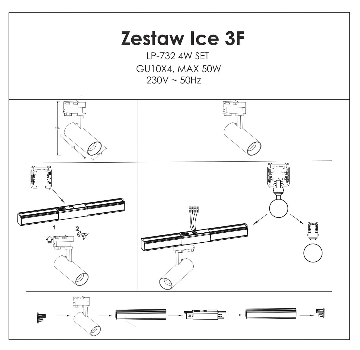 Reflektor Ice do szynoprzewodów 1F 1xGU10 czarny LP-732/1R 3W BK Light Prestige