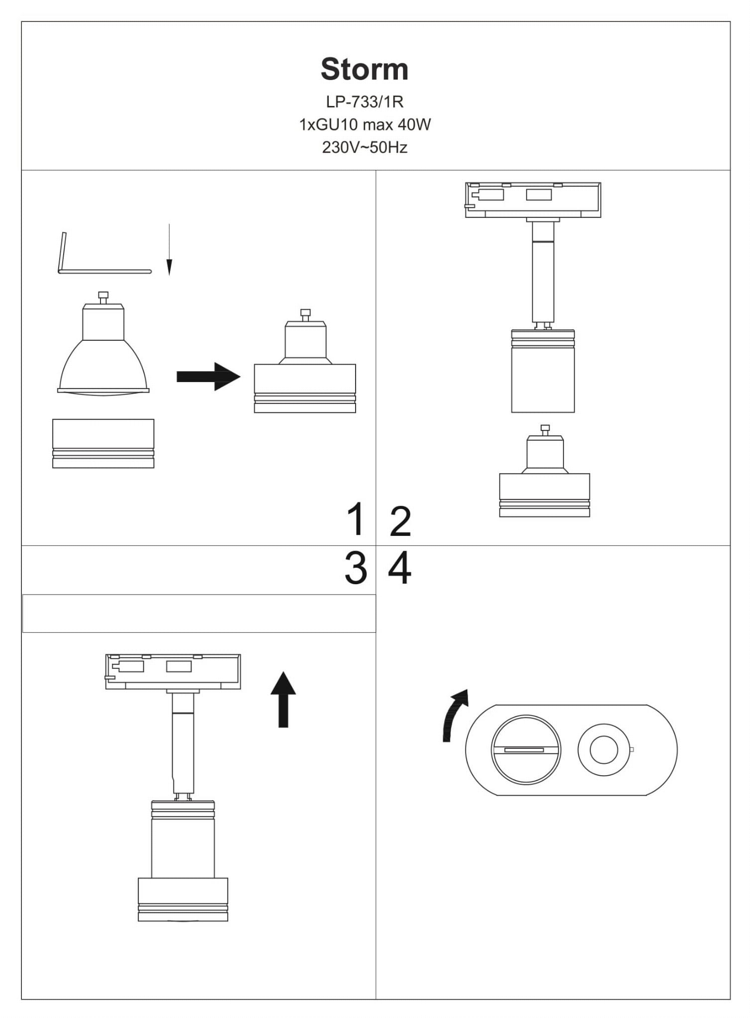 Reflektor Storm do szynoprzewodów 1F 1xGU10 czarny LP-733/1R BK Light Prestige